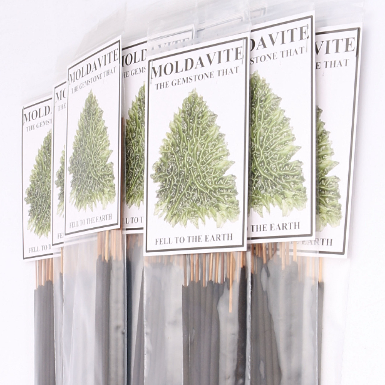 Moldavite – A crystal that was created by an impact of a meteorite that fell to the earth. It is a very high vibrational crystal. Creates movement and shifts in your life. This amazing incense created in North America has the essence of Moldavite. The moldavite has been placed in pure water and soaked so that the essence can form. It has then been mixed with the incense powder to create this amazing incense.